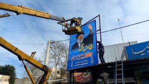نصب تابلو خامنه ای جان ایران است